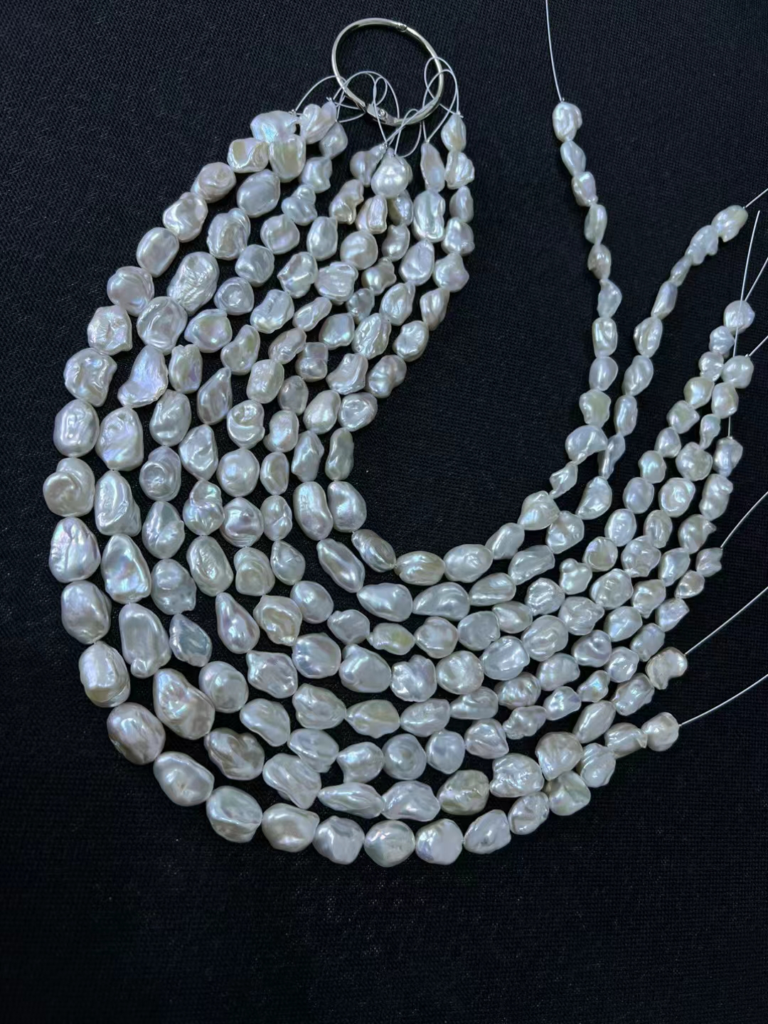 We have many customers who are interested in buying these kinds of loose keshi white pearls to make keshi pearl necklace, keshi pearl earrings, Keshi pearl bracelets, and these kinds of pearls are rare and rare in the pearl market, luckily we have plenty of them in stock.