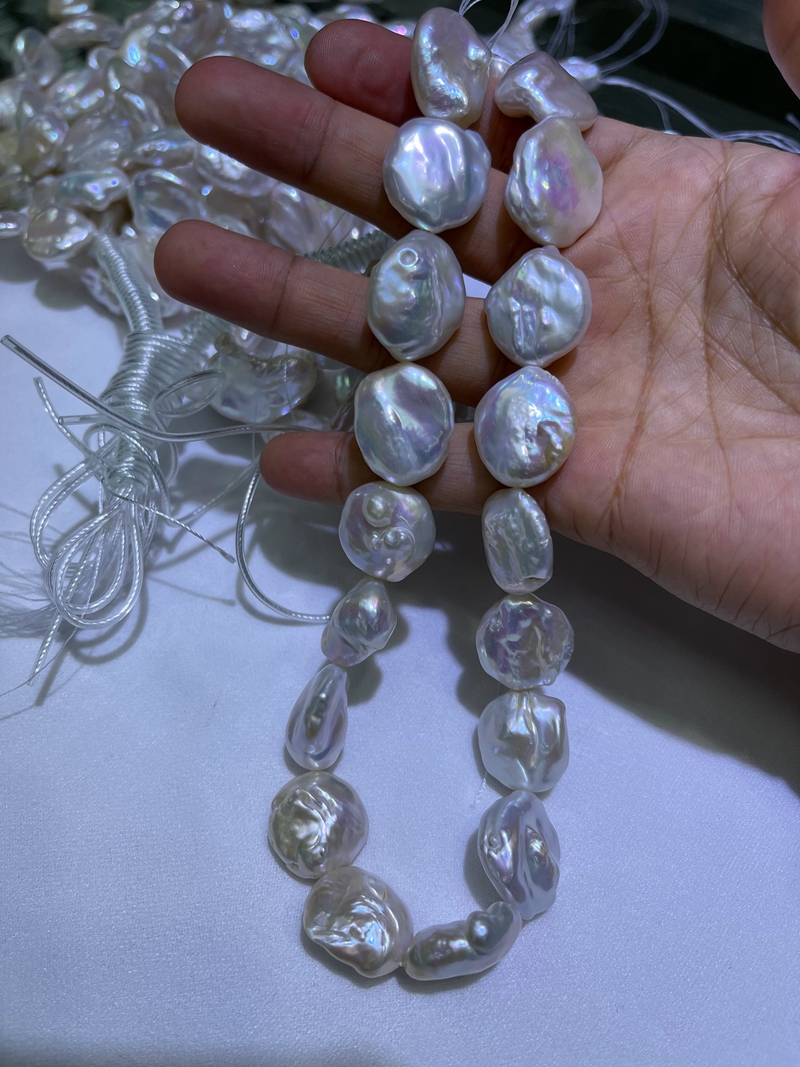 Our collection of baroque cultured pearl loose beads will take you into a world full of artistic expression and uncomon beauty. Come and source the finest and cheapest large flat baroque pearls .You can make them into large baroque pearl drop earrings and also large baroque pearl necklace.