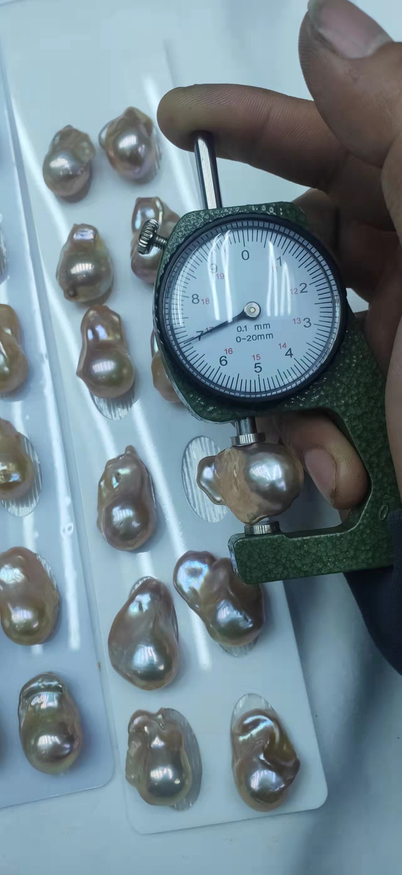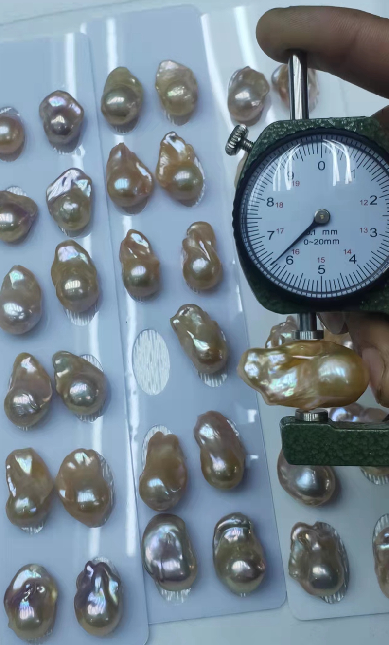 Bead size: 15mm for width size of pearl and 20-25mm length size of pearl