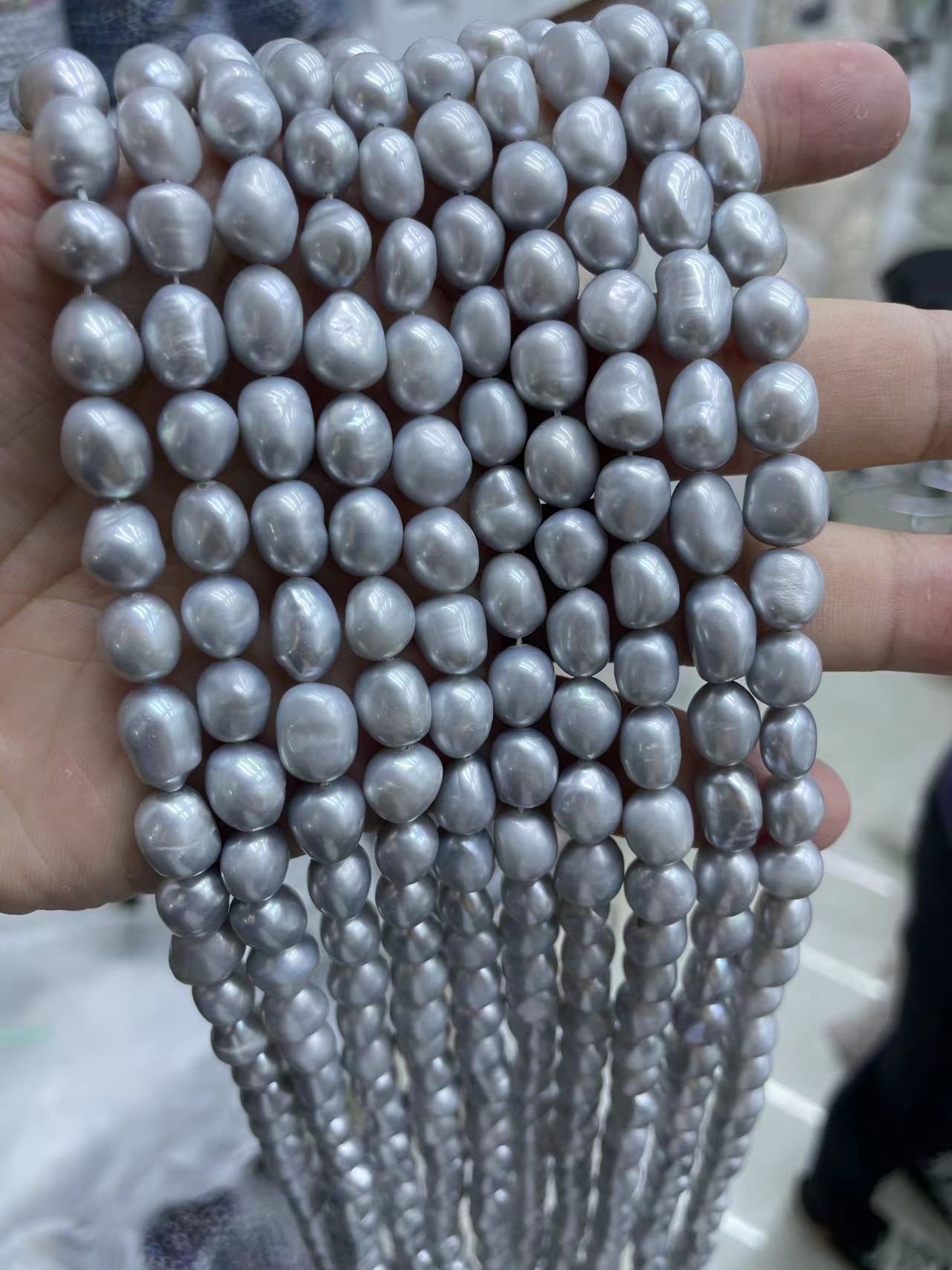 These grey freshwater pearls 9mm are loose beads that are perfect for jewelry making. They have a unique and beautiful nugget baroque shape, giving them a natural and organic look.With its beautiful and elegant gray color, it shows special looks.