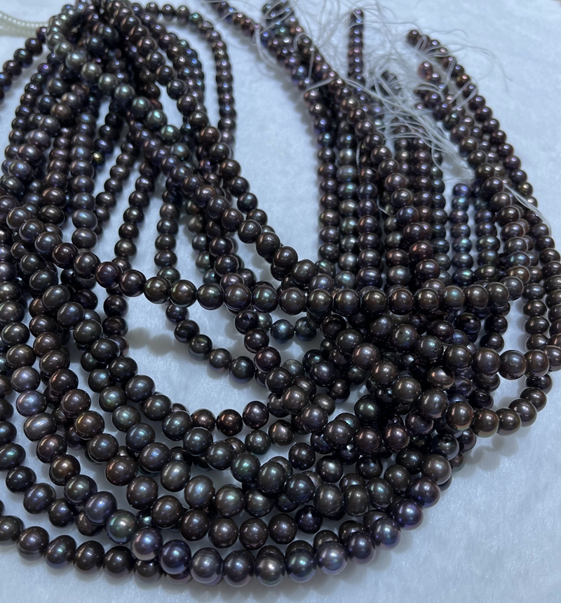 Off round 7mm peacock black round loose pearl strands 16 inch for jewelry making.