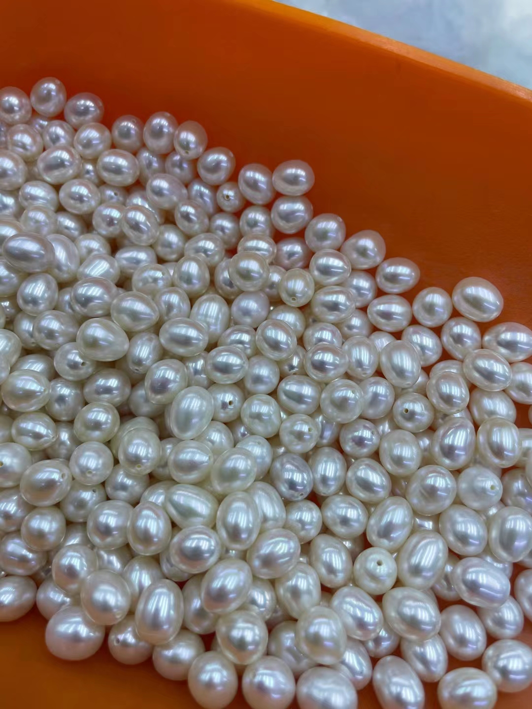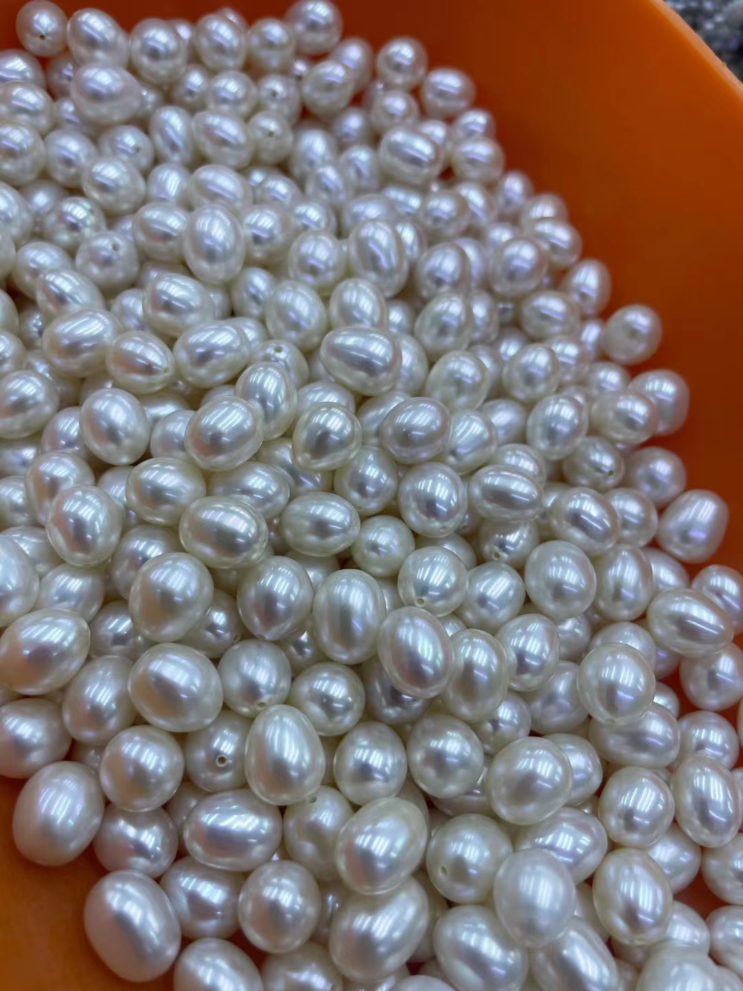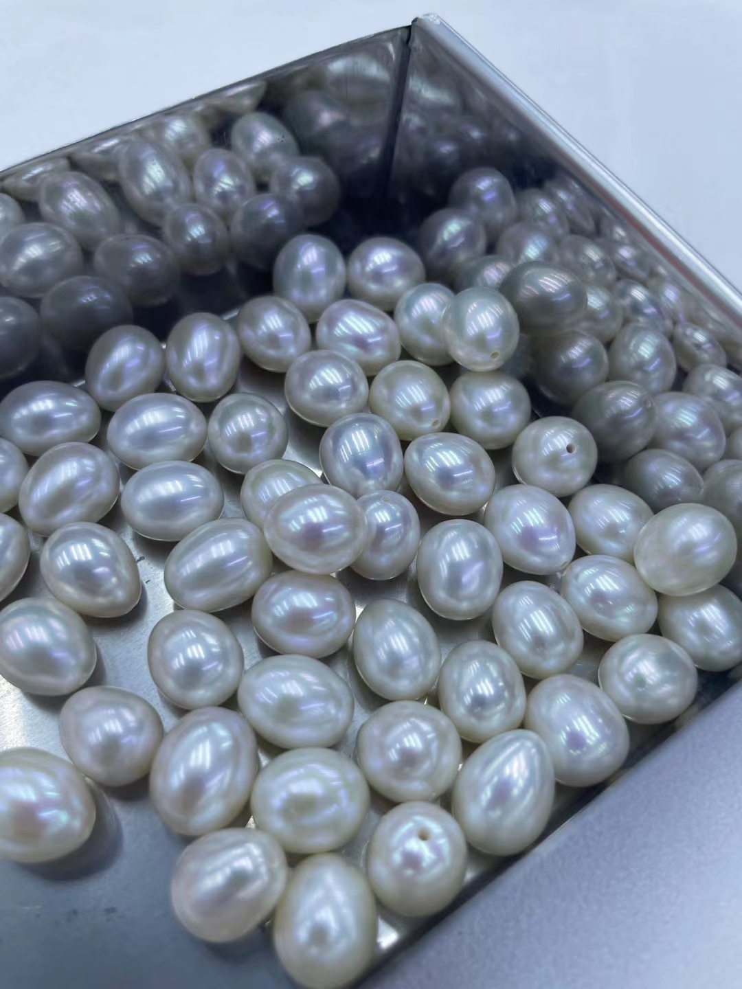 natural white bright high grade 9mm cultured rice shape drop shape freshwater pearl beads for wholesale